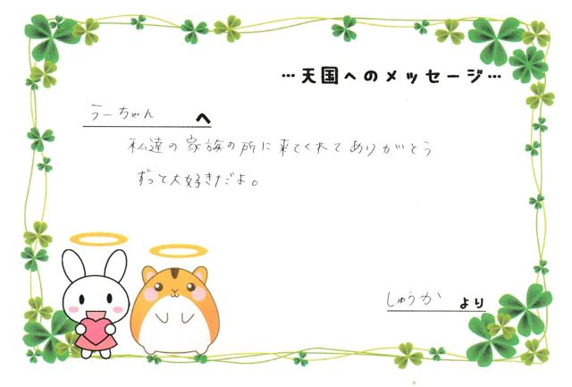 うーちゃん ありがとう 🐹 – 大崎ペット斎場